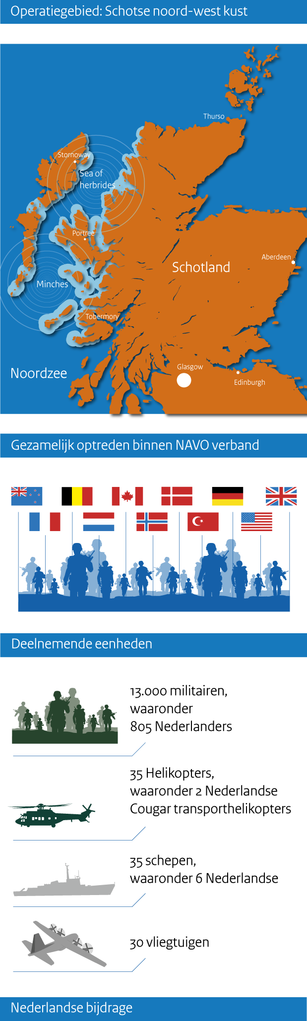Het was een vloot die op een moderne manier deed denken aan de tijd van Michiel de Ruyter: meer dan 10.000 militairen, 35 schepen, 35 helikopters en 30 vliegtuigen deden vorige maand mee aan de voorjaarseditie van de grote internationale oefening Joint Warrior.