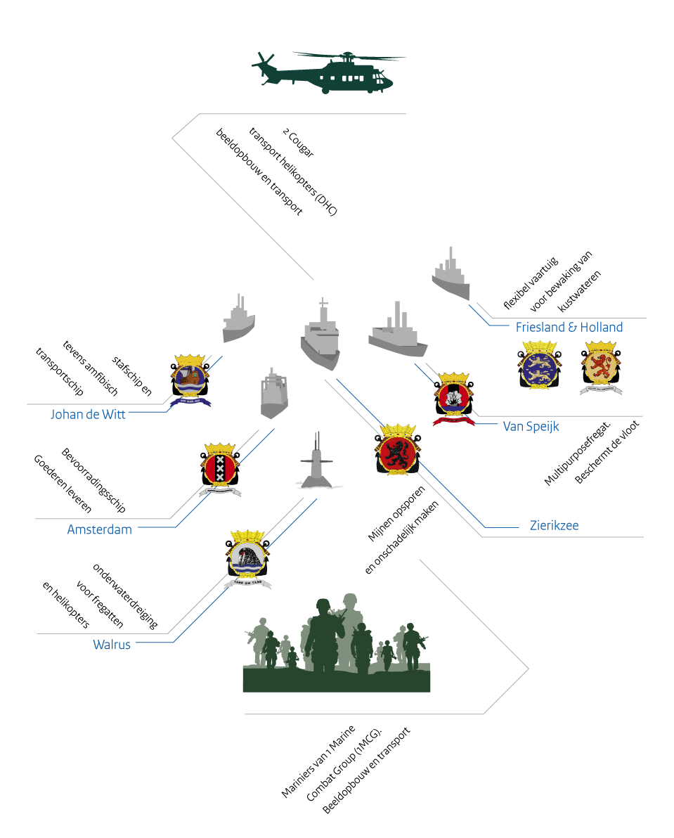 “Wij worden vooruit gestuurd als de vloot nauw vaarwater nadert”, vertelt de bestuurder van de FRISC, kwartiermeester Jeroen Braaksma. Ze zijn de ogen en oren van het moederschip, zodat de vloot ongehinderd kan doorvaren.