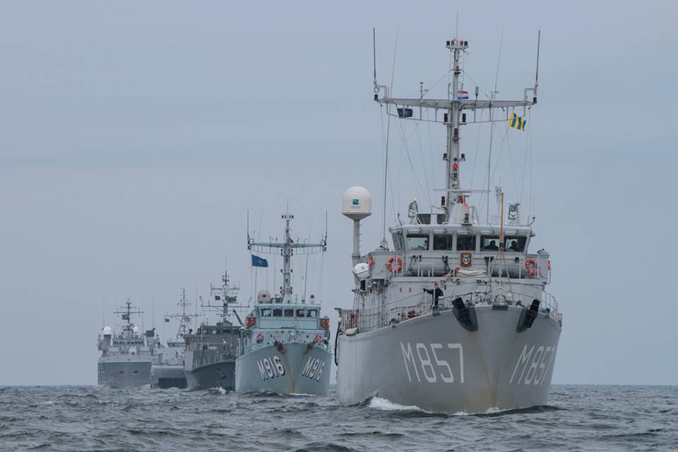 De vloot bestond naast de Makkum uit: de Belgische mijnenjager BNS Bellis, de Noorse mijnenveger HNoMS Otra, de Estse mijnenjager ENS Admiral Cowan en HNoMS Valkyrien (het commando- en ondersteuningsschip). Foto: AP, Gero Beloer
