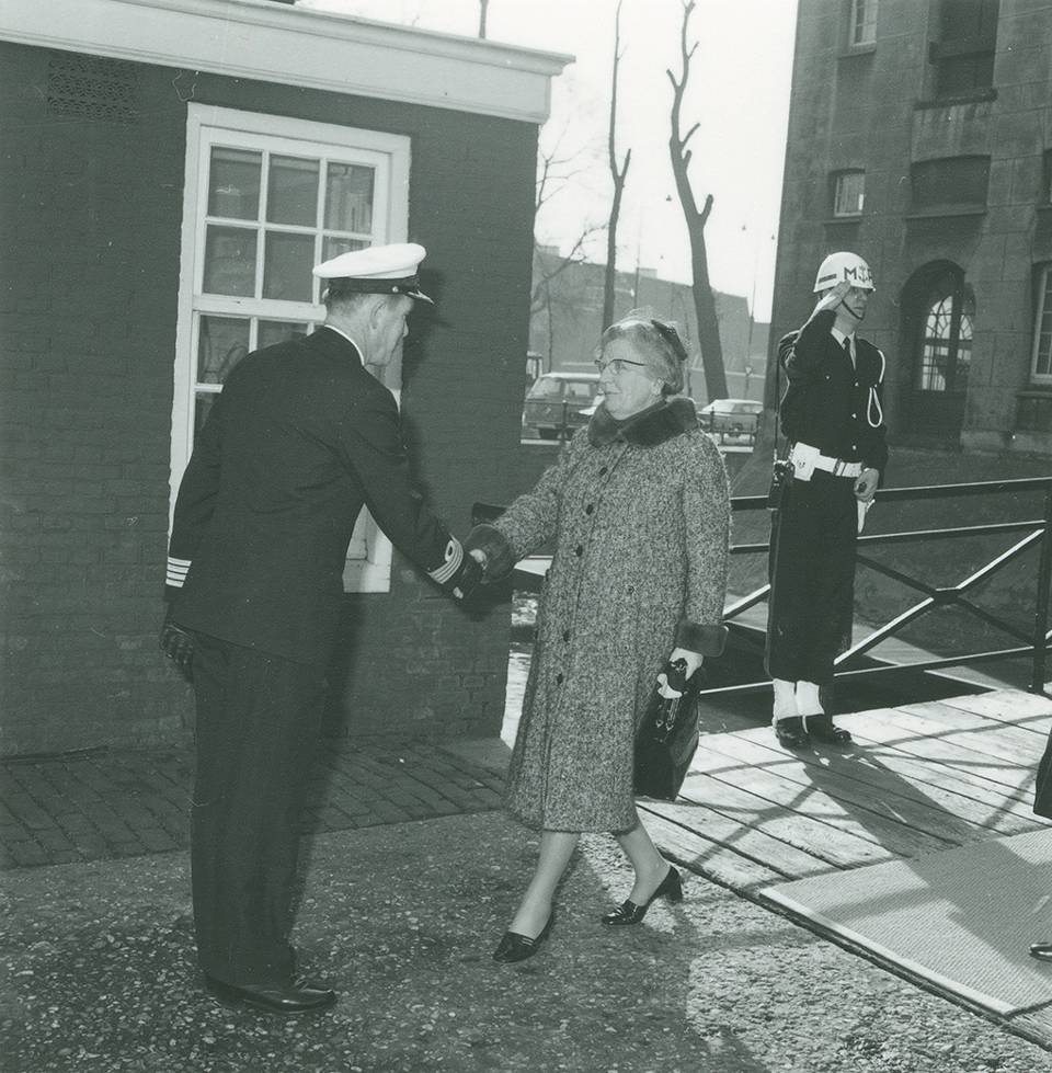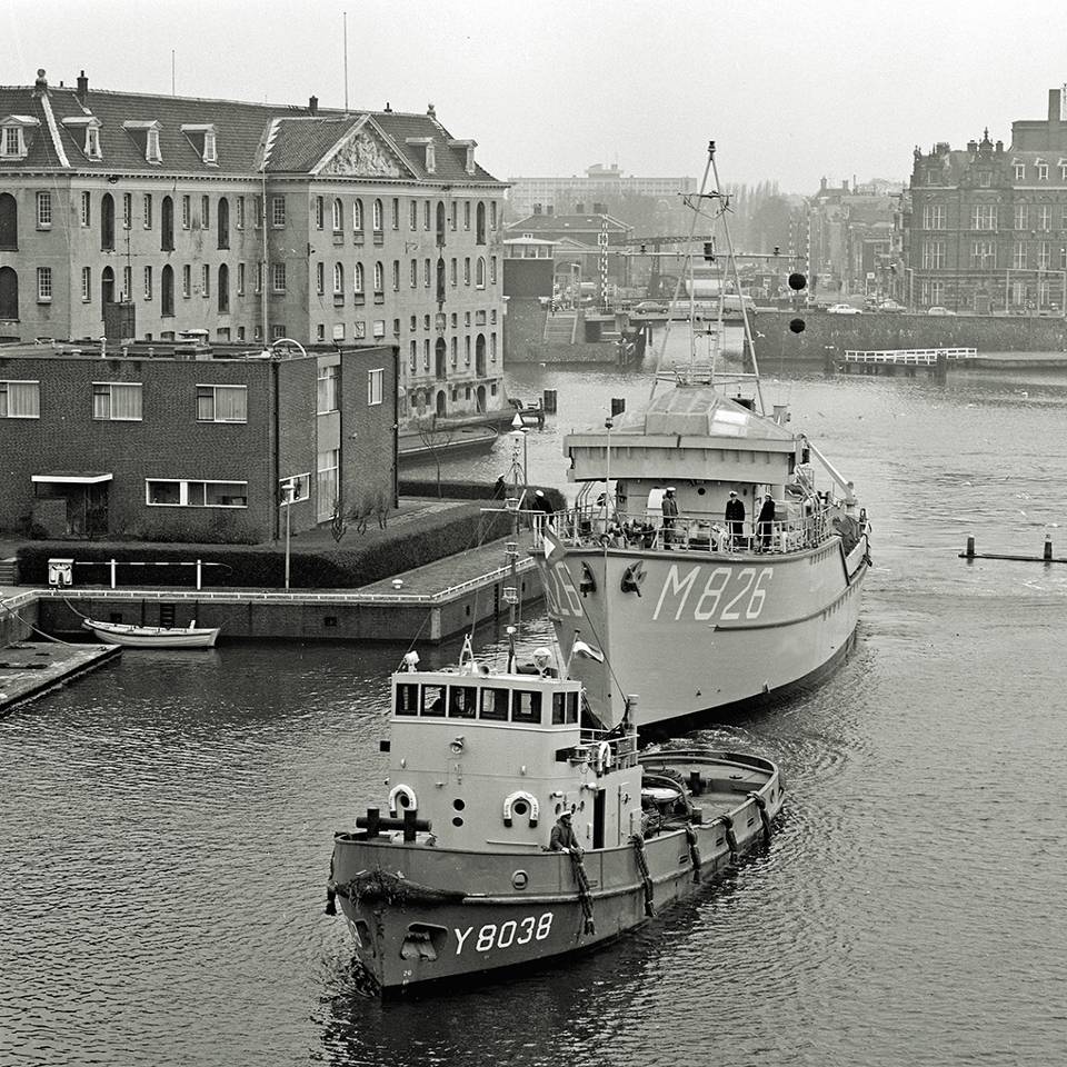 In de 17e eeuw gebruikte Michiel de Ruyter de werf als vertrekpunt. Drie eeuwen later zijn er nog scheepsbewegingen. Op de foto Hr.Ms. Grijpskerk (1956-1965).
