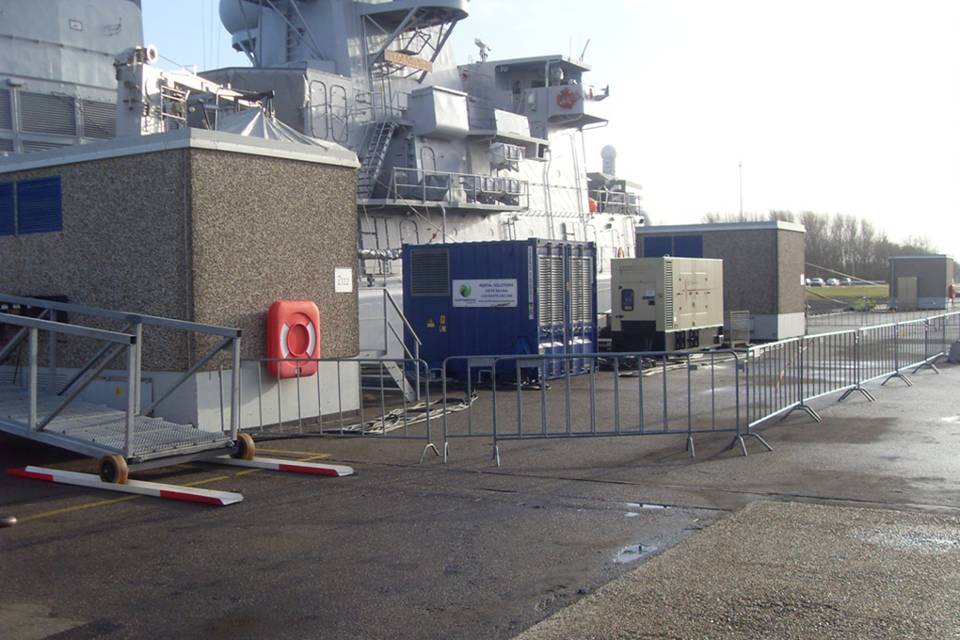 De Johan de Witt is als eerste van de 2 Landing Platform Dock’s uitgerust met een hoogspanningsaansluiting. Zodra de financiën rond zijn, wordt ook de Rotterdam aangepast. De Karel Doorman is bij de bouw direct uitgevoerd met een hoogspanningsaansluiting. Dat kon ook niet anders volgens hoofd technische dienst van de Karel Doorman, kapitein-luitenant ter zee Glijn van Marion. “Zelfs als we binnen liggen kunnen we vanwege het benodigde vermogen geen gebruik maken van laagspanning. We hebben alleen voldoende aan laagspanning wanneer het schip in onderhoud gaat. Dan gebruiken we namelijk alleen de verlichting en ventilatie.” Van Marion is dan ook blij met de tijdelijke hoogspanningsaansluiting op steiger 21, die speciaal voor het Joint Support Ship (JSS)werd aangelegd.