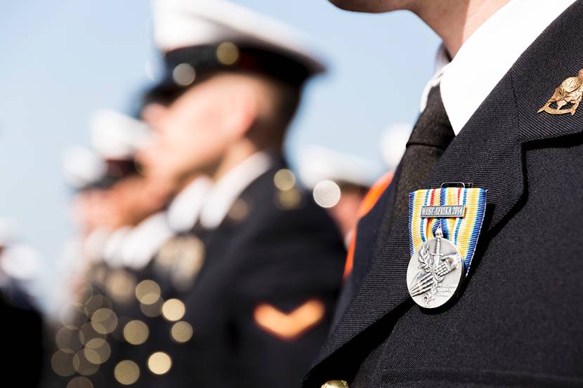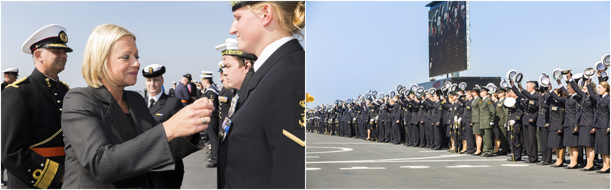 Nog voor de indienststelling een operatie. Defensieminister Hennis reikte de herinneringsmedaille uit voor Humanitaire Hulpverlening bij Rampen.