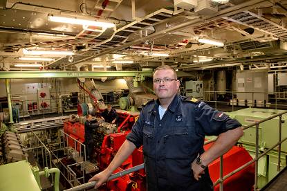 “Het schip is een alleskunner: tanker, transportschip en ziekenhuis. Het vergt gewoon tijd om al die systemen allemaal goed werkend te krijgen. Komend jaar hebben we het daar druk mee. Dat vind ik niet erg. Ik heb het hier heel erg naar mijn zin. Voor een TD’er als ik is dit de mooiste plaatsing.”