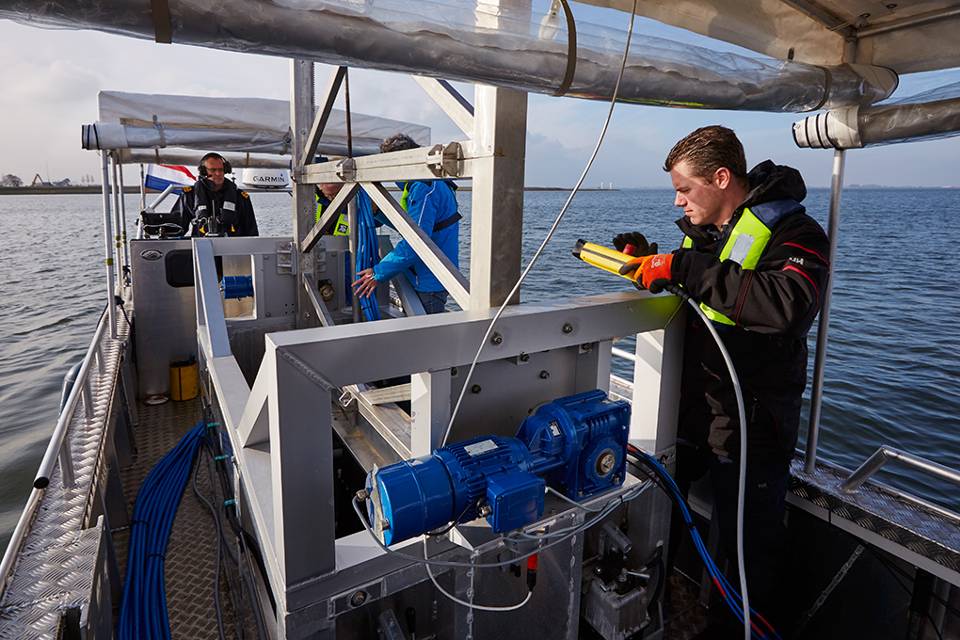 Het resultaat is dat TNO nu beschikt over een vaartuig waarop een geavanceerde sonar is gemonteerd die op verschillende lage frequenties breedbandig kan uitzenden en ontvangen. “Een nauwkeurig plaatsbepalingssysteem geeft continu aan waar het vaartuig zich bevindt”, legt Van IJzerloo uit. “De bestuurder kan daarmee precies over de gewenste track varen en een gebied scannen. De sonar doet zijn werk en computers zorgen dat alles wordt opgenomen. De datasets die hiermee worden vergaard, zijn van onschatbare waarde. Een analyse van de test op het Haringvliet moet aantonen of de doelstelling is verwezenlijkt.”