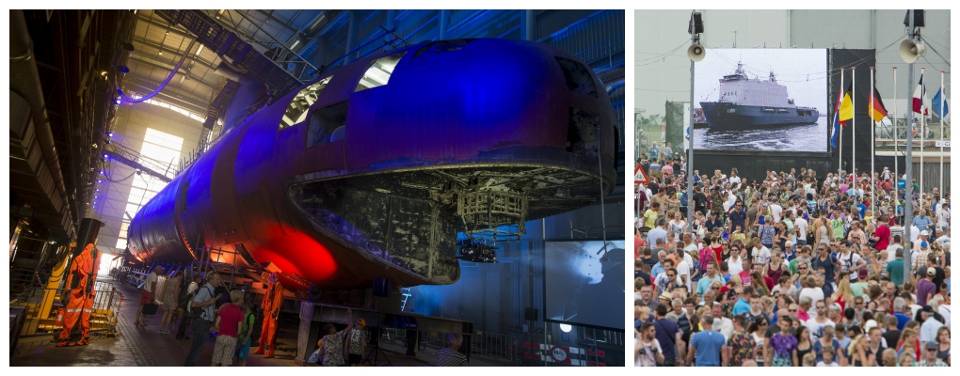Foto links: Zr. Ms. Zeeleeuw (in onderhoud) prachtig uitgelicht in dok 4. | Foto rechts: de Marinedagen trokken veel bekijks.