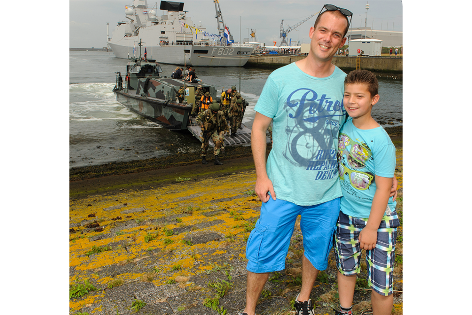 Patrick Bais uit Den Helder is met zoon Roan op de Marinedagen: “Wij komen hier elk jaar. Mooi om alles te zien’, zegt hij. (“Nee, het is gááf!”, verbetert Roan hem.) Bais vindt de Koninklijke Marine ‘superbelangrijk’. “Er is heel veel op bezuinigd; een hele slechte zaak. Ik vind dat de marine vooral goed bezig is met drugsbestrijding in het Caribisch Gebied en de anti-piraterijmissie. En nu is er weer dreiging in het oosten; de NAVO-bondgenoten daar moeten ook beschermd worden.”