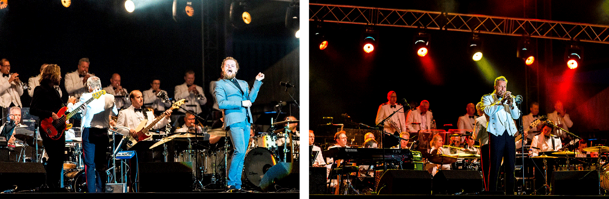Op eigen houtje maakte de Marinierskapel al indruk met de onmisbare klassieker ‘Zorg dat je erbij komt’ en medleys van Phil Collins en Earth Wind & Fire. ’Ik had geen idee dat ze zó goed waren!’ of met woorden van gelijke strekking reageerde menigeen bij de pers en het massaal toegestroomde publiek. De toelichting dat al deze militaire musici conservatorium geschoold zijn, maakte daarop veel duidelijk.