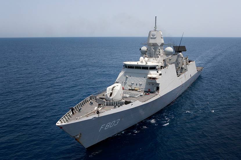Zr. Ms. Tromp nam onlangs deel aan de oefening Contex Phibex voor de kust van Portugal. Het luchtverdedigings- en commandofregat maakt sinds afgelopen maand deel uit van de Standing NATO Maritime Group 1. Contex Phibex is een internationale oefening waaraan 20 schepen uit Portugal, Spanje, Frankrijk en Duitsland deelnamen. Contex Phibex bestond uit twee fases: een oefenfase waarin alle schepen met elkaar samenwerkten en een tactische fase waarin de ene groep een Multi National Task Force vormde en de andere groep de rol van de oefenvijand op zich nam. Het scenario draaide om een conflict in een fictieve regio, waarbij landen in die regio allen aanspraak maakten op natuurlijke bronnen en grondstoffen. Zr. Ms. Tromp fungeerde binnen dit scenario als vijand. Het Hoofd Operationele Dienst, LTZ 1 Dennis Oorbrug: “Normaal gesproken zetten wij onze wapens en sensoren in ten behoeve van VN- en NAVO-missies. Onze rol van oefenvijand bood de mogelijkheid om eenheden van onze NAVO-partners te trainen voor toekomstige missies”. (Foto: Mediacentrum Defensie)