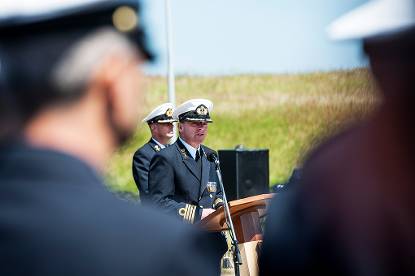 De jaarlijkse herdenkingsbijeenkomst van CZSK vond 28 mei voor de achtste keer plaats bij het brugcomplex van ex-Hr. Ms. De Ruyter, achter het Marinemuseum. Tijdens de bijeenkomst zijn 43 in actieve dienst overleden militairen en burgermedewerkers van CZSK (1 mei 2014 tot 1 mei 2015) herdacht. Dat gold ook voor in actieve dienst overleden militairen en burgermedewerkers uit eerdere jaren, waarvan nabestaanden aanwezig waren. Tijdens de herdenking hield onder anderen Commandant Zeestrijdkrachten LTGENMARNS Rob Verkerk een toespraak. Tevens werden de namen van de overledenen opgelezen en vonden er kransleggingen plaats. (Foto: Mediacentrum Defensie)