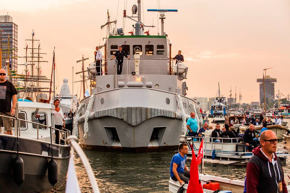 Een maritiem über-feestje, dat was SAIL 2015 in Amsterdam. Tallships uit verre landen en van dichterbij presenteerden zich in al hun glorie in de IJhaven en omgeving. Ook veel andere (historische) schepen meerden aan, net als een ruime marine-vertegenwoordiging. Hiertussen trokken landingsvaartuigen en rubberboten van het Korps Mariniers hun baantjes tussen Marine Etablissement Amsterdam en aangemeerde marineschepen, met aan boord gasten, pers en personeel. De Marinierskapel zette SAIL luister bij met 2 drukbezochte concerten.