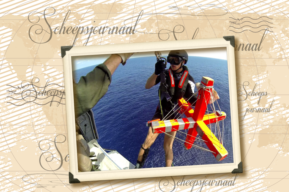 Vandaag een hijsoefening gehouden. Het doel hiervan was om de scheepsarts vanuit de heli aan boord te krijgen van een schip. Dat kan in de praktijk van alles zijn, van een olietanker tot een zeilboot. Mijn taak is de dokter veilig op het schip te krijgen om medische ondersteuning te bieden. We oefenden dit boven de bak van de Groningen. Met brancard en andere spullen staat de arts dan in no time aan dek. Met dit soort inzet kun je iemand snel medische zorg bieden en als het moet van boord halen voor verdere behandeling.