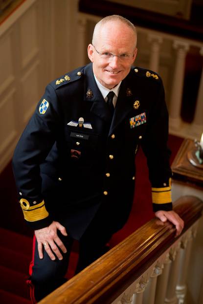Sinds ruim een jaar bekleedt luitenant-generaal (KLu) Bart Hoitink de functie van IGK. “Een koninklijke en eervolle baan”, zo omschrijft de generaal zijn functie, met het oog op de oorsprong ervan. “Bernhard is 31 jaar lang IGK geweest, tot aan zijn aftreden in 1976.” De militaire carrière van Hoitink – eveneens vlieger – begon in 1982. Via operationele plaatsingen, zoals commandant van de Cougar-missie voor SFOR in Bosnië (2000) en 298 Squadron (2005-2006), en staffuncties binnen de luchtmacht en in ‘het Haagse’, kwam Hoitink op de statige Zwaluwenberg terecht, te Hilversum.