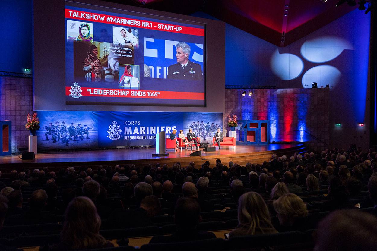 Wat is leiderschap? Wat kenmerkt goed leiderschap binnen het Korps Mariniers? Hoe werkt dat buiten de militaire setting? Een rijtje sprekers en een zaal vol (oud-)mariniers en andere belangstellenden zochten begin deze maand naar de antwoorden. Dat gebeurde onder leiding van dagvoorzitter Eva Brouwer tijdens het symposium ‘Leiderschap sinds 1665’. “Stop met mensen te vertellen wat ze moeten doen.”