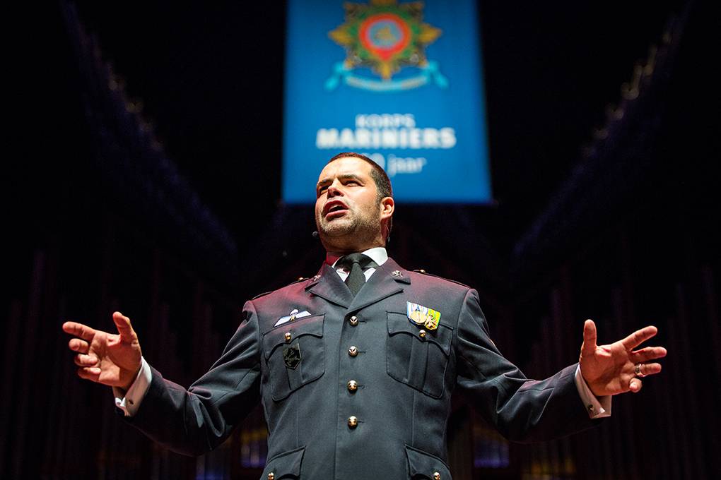 70 jaar Marinierskapel der Koninklijke Marine en 350 jaar Korps Mariniers, er viel genoeg te vieren tijdens het Korpsconcert, vorige maand in De Doelen te Rotterdam. Dat deed de kapel dan ook met een veelzijdig programma, van Michael Bublé tot Les Misèrables. Eén oud-marinier stal vooral de show: bariton Bastiaan Everink.