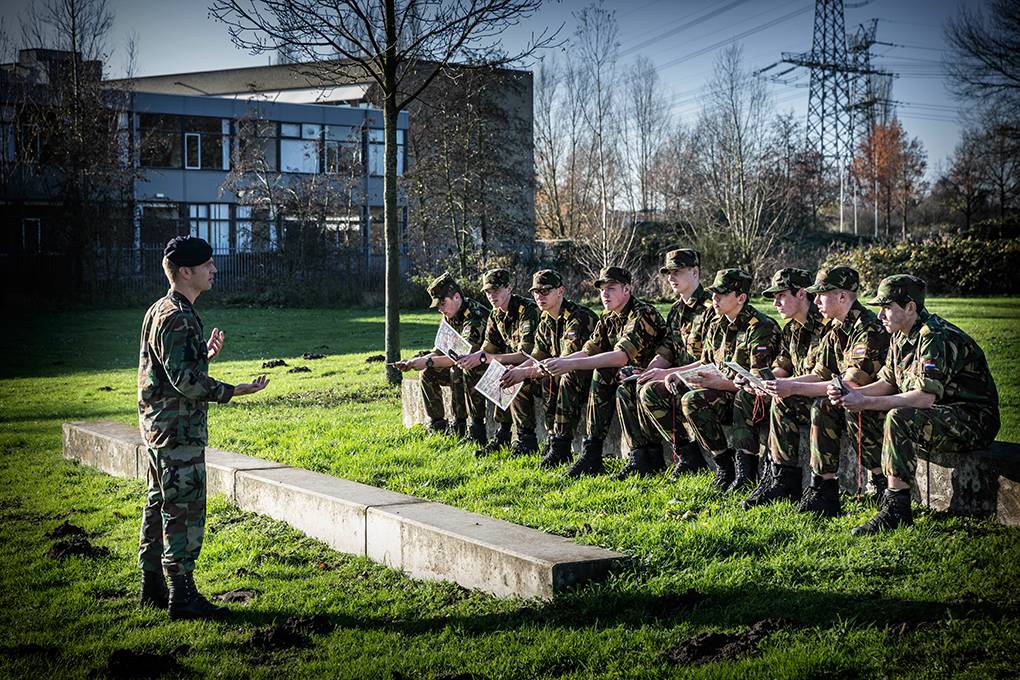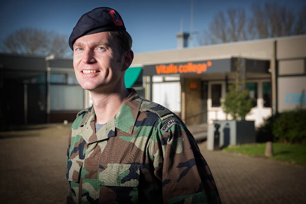 Op de basisschool wist hij het al: marinier, dát wil ik worden. Een Plan B was er simpelweg niet. Inmiddels leeft Frank Bijkerk zijn droom, al zijn halve leven. Ondertussen ontdekte hij zijn tweede passie: anderen lesgeven en coachen. Dat doet hij tegenwoordig op het Vitalis College in Breda. Daar is hij 1 van de 5 militair-instructeurs van de opleiding Veiligheid & Vakmanschap (VeVa). Jaarlijks brengt hij zo’n 200 leerlingen de fijne kneepjes van het (algemene) militaire vak bij. “Die jongens zijn waarschijnlijk mijn toekomstige collega’s.”