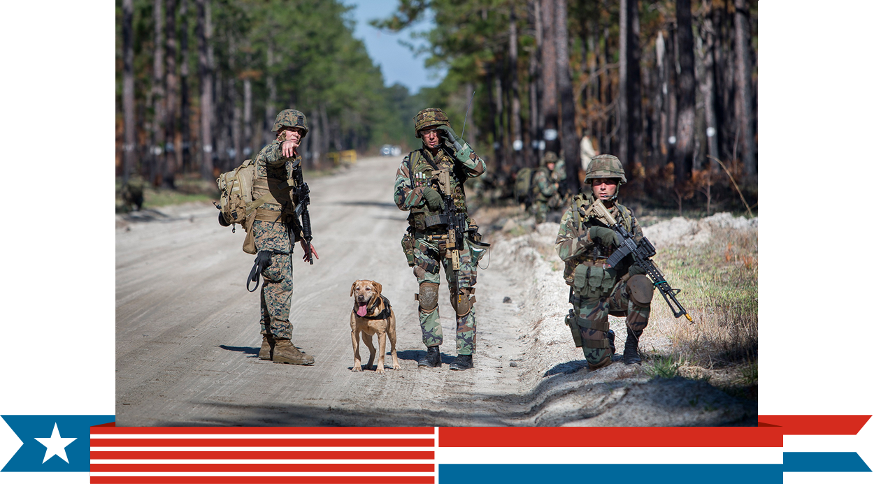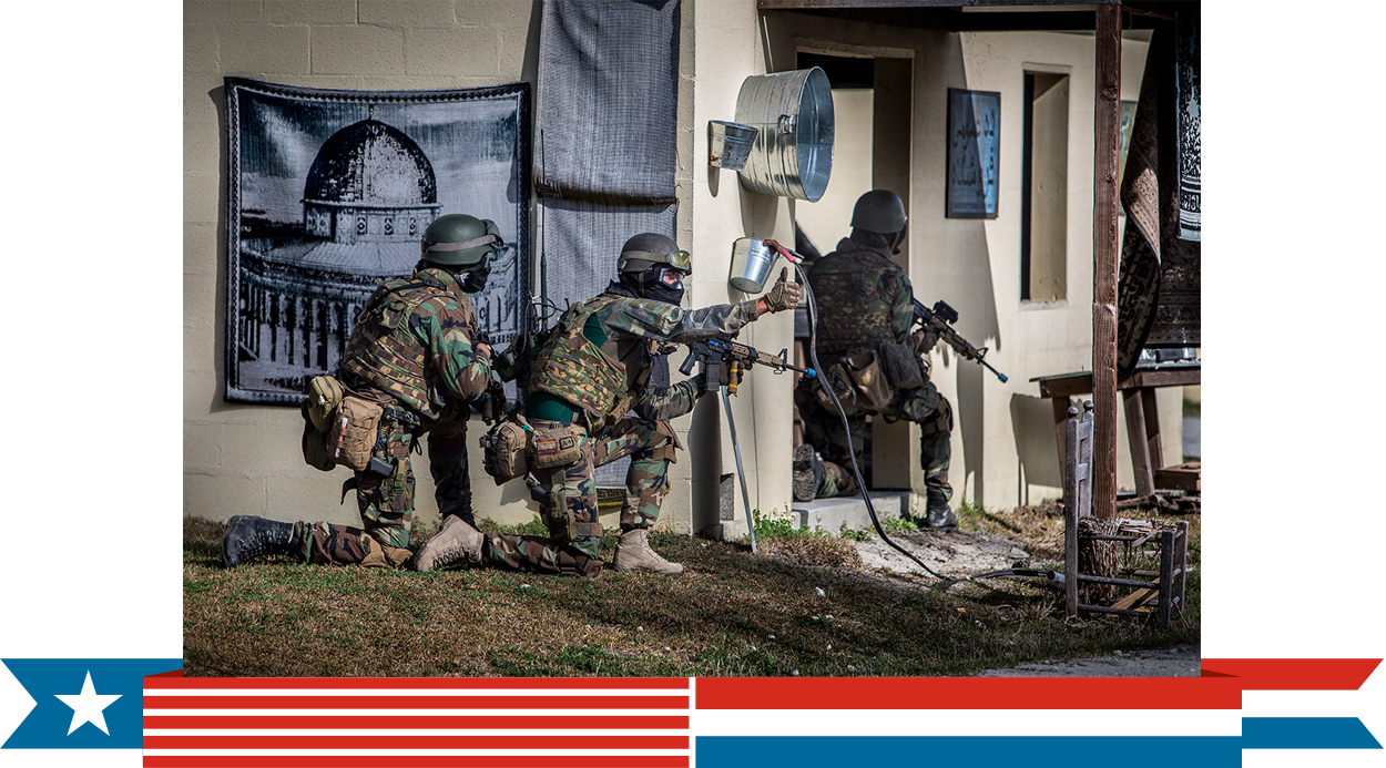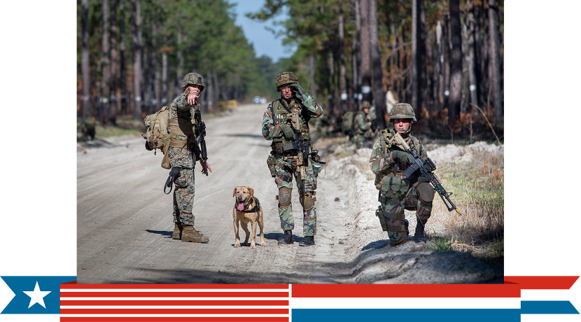 Het 32ste Raiding Squadron (RSQN) van Aruba is in maart 3 weken lang in de weer op Camp Lejeune, in de oostelijke staat North-Carolina. ‘The home of the expeditionary force’ – 45.000 militairen van het United States Marine Corps (USMC) wonen en werken hier – heeft een hartelijk welkom bereid aan de broeders van het Nederlandse Korps Mariniers. Het squadron is aangevuld met een FRISC-peloton uit de West, snipers, een team met kleine onbemande verkenningsvliegtuigen van het type Raven, ‘Joint Tactical Air Controllers’ (JTAC) en logistieke plus medische ondersteuning. In totaal zo’n 150 mensen.