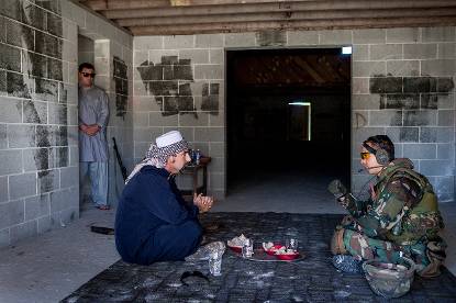 Wanneer een aantal initiële trainingen is doorlopen, knopen de Amerikaanse en Nederlandse oefenleiders de scenario’s aan elkaar. Optreden op en vanaf het water en patrouillegang door verstedelijkt gebied. 2 Troop van het 32ste RSQN beweegt zich in de lome zon tactisch over een zandweg richting het Afghaanse oefendorp. Wanneer de Amerikaanse snuffelhond (Labrador) plotseling gaat liggen naast de weg, is het duidelijk: hier ligt een explosief verborgen. Eerste luitenant der mariniers Xavier kiest voor een omtrekkende beweging en nadert zo het dorpje. Hier spreekt de ‘dorpsoudste’ hem aan. Er is heisa met radicaliserende dorpsgenoten. Het peloton gaat op onderzoek uit en wordt onder vuur genomen. Humvees met zwarte vlaggen schieten tevoorschijn en verdwijnen net zo snel ook weer uit het dorp. Nu komt de JTAC'er van de eenheid tot zijn recht, op één van de daken. In no time biedt een Cobra ‘close air support’. In het echt zou het pleit dan snel beslecht zijn.
