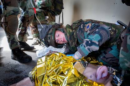 Aansluitend verplaats de actie zich naar het naastgelegen ‘vluchtelingenkamp’, waar de hond een tweede strijder grijpt en de Nederlandse mariniers zich vooral wijden aan de afvoer van een oefengewonde, per Osprey.