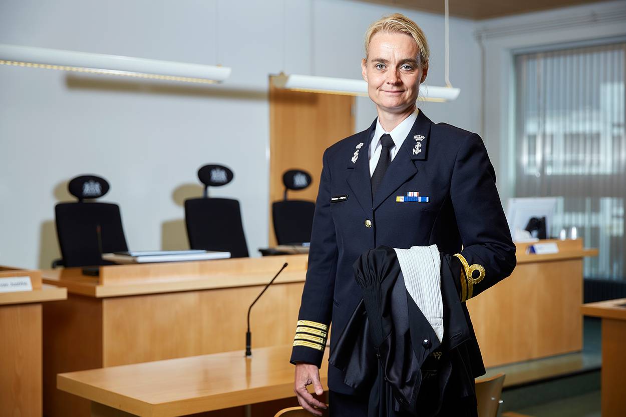 Rechter kapitein ter zee (LD) Anne-Marie Schuurman heeft haar collega’s en griffiers weleens laten meevaren op Zr. Ms. Rotterdam. “Zo konden ze zelf ervaren hoe het is om bovenop elkaars lip te leven, werken en slapen. Ze hadden het nog luxe, met 2-persoons hutjes. Mariniers delen op de Rotterdam hun slaapruimte met 35 man.” Schuurman is de eerste vrouw die namens de krijgsmacht zitting heeft genomen in een bijzonder rechtscollege: de Militaire Kamer van de Rechtbank Gelderland.