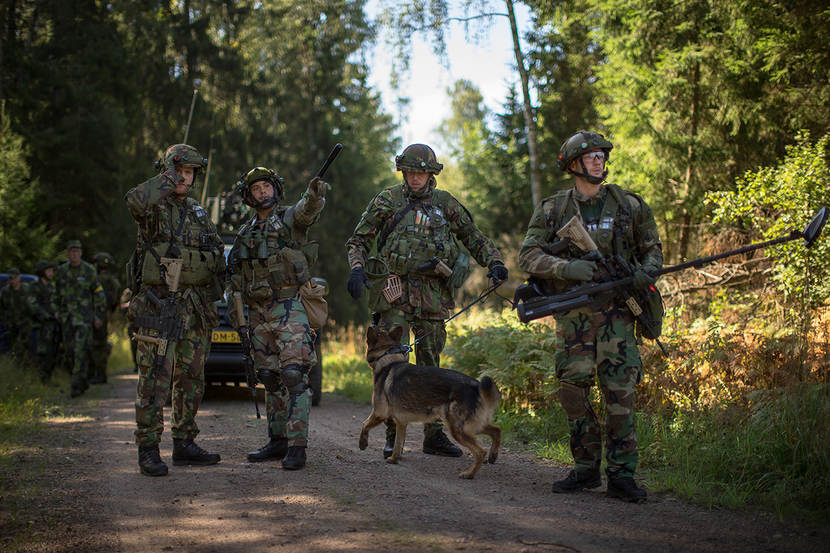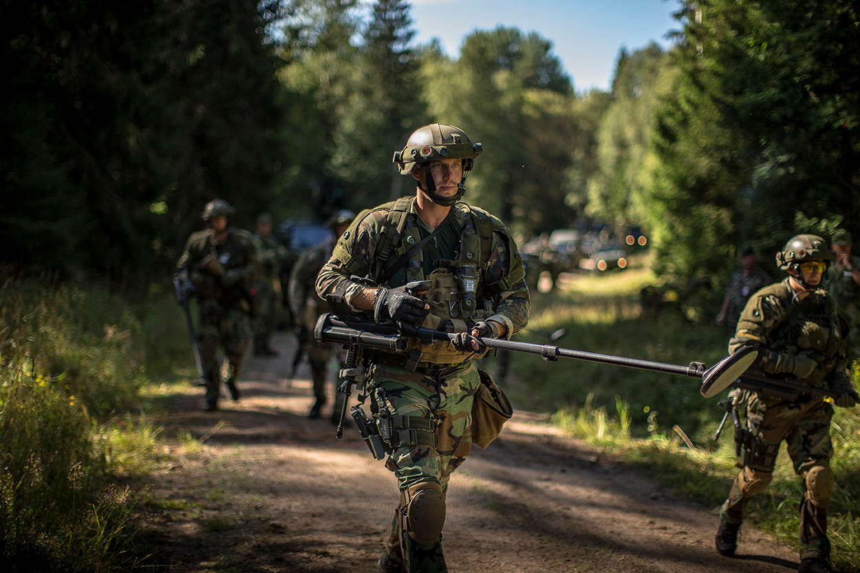 De metaaldetector beweegt langzaam en gecontroleerd van links naar rechts. Keer op keer blijkt 10 centimeter van de route door het Zweedse boslandschap vrij van ‘Improvised Explosive Devices’ (IED’s). De mariniers van het ‘Intermediate Search Team’ van 24 Assault Engineers zetten een stap voorwaarts.