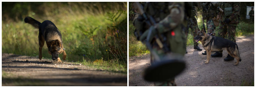 Vandaag worden de Nederlanders ook nog eens ondersteund door een explosieven-speurhond van de luchtmacht. Terwijl de mariniers met hun metaaldetector het eerste pad vrijmaken, volgen Billy en zijn begeleider direct in het spoor. Pas als de omstandigheden geschikt zijn, komt deze speurneus in actie. Als de risico’s voor de hond minimaal zijn, laat zijn begeleider sergeant Manfred hem los. ‘Tripwires’ (struikeldraden), die een IED doen afgaan, maken het voor de speurneus bijvoorbeeld te gevaarlijk. Dan gaat het hard. Billy schiet de mariniers voorbij en raast, neus aan de grond, de bocht door. Na ongeveer 50 meter roept zijn baas hem terug. Wat de mariniers met alle technologie een uur bezig zou houden, doet de hond in minder dan een minuut.