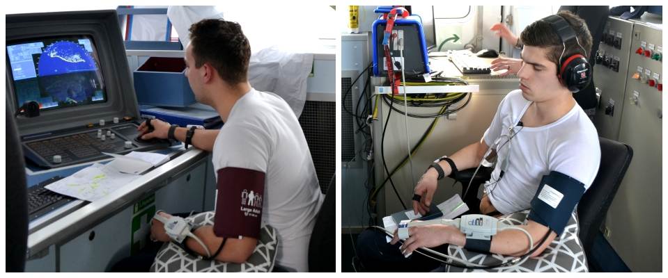 In aanloop naar het onderzoek op het KIM was de vraag of de bevindingen uit het lab ook zouden gelden in een operationele trainingscontext. Om dit te achterhalen, werd gekozen voor de mist-navigatiescenario’s op zowel de brugsimulator van het KIM als het opleidingsvaartuig Van Kinsbergen. Voor het onderzoek volgde TNO 15 adelborsten tijdens diverse scenario’s en in verschillende rollen op de brug. De adelborsten werden aan mobiele apparatuur gekoppeld om hartslag, bloeddruk en huidgeleiding te meten. Voor en na de scenario’s  vulden de adelborsten ook uitgebreide stressperceptie-vragenlijsten in. Tot slot beoordeelde een instructeur hun prestaties.