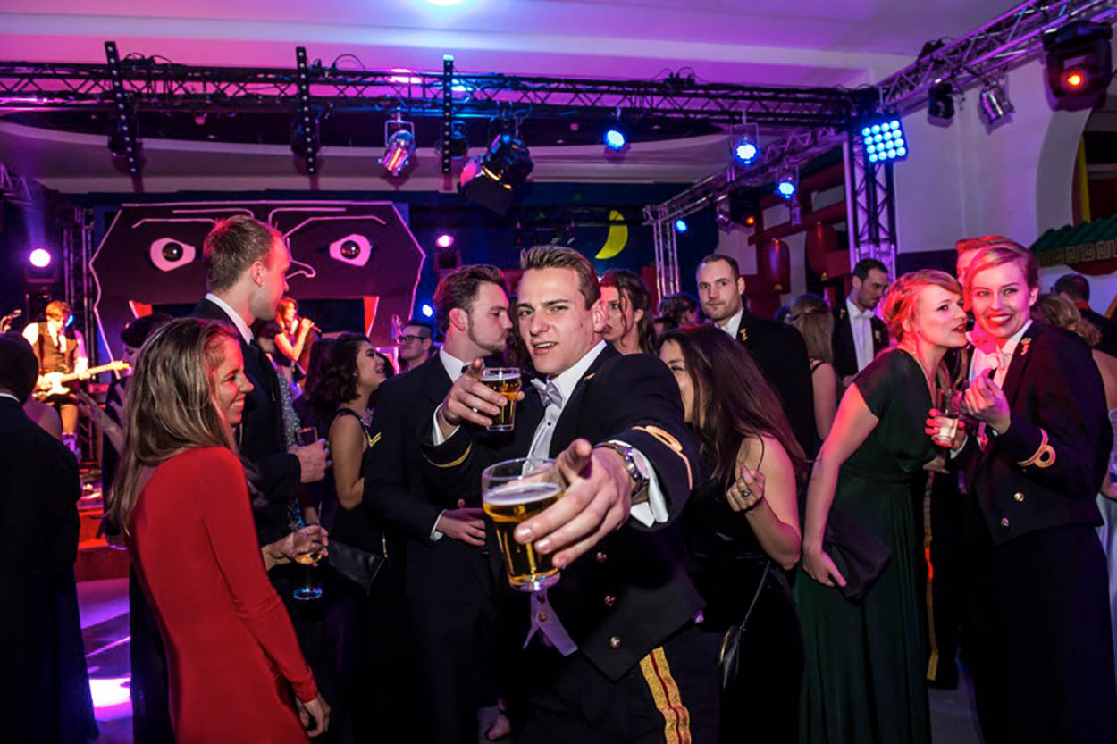 Zoals het een goed feest betaamt, begint de avond rustig en ontspannen. De gasten drinken wat aan de bar en zijn druk met elkaar in gesprek. De stemming komt er steeds meer in en later op de avond gaan de voetjes van de vloer. Een band en dj wisselen elkaar af. Het onderscheid in rangen vervaagt steeds meer. Van traditioneel stijldansen komt weinig. De gasten lijken beter te gedijen op gouwe ouwe plaatjes en de nieuwste hits.
