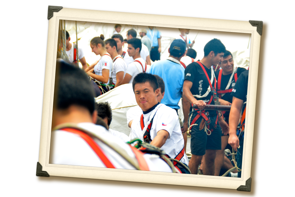 Ter versterking van de internationale relaties nodigt de Chileense marine elk jaar buitenlandse marines uit om een adelborst of jonge officier een gedeelte van een reis mee te laten te maken. Het traject van Shanghai (China) naar Valparaiso (Chili) viel te beurt aan Van Kampen. Haar taak: samen met 13 andere buitenlandse genodigden manoeuvreren van de zeilen, de wachten op de brug en meedraaien op het dek.