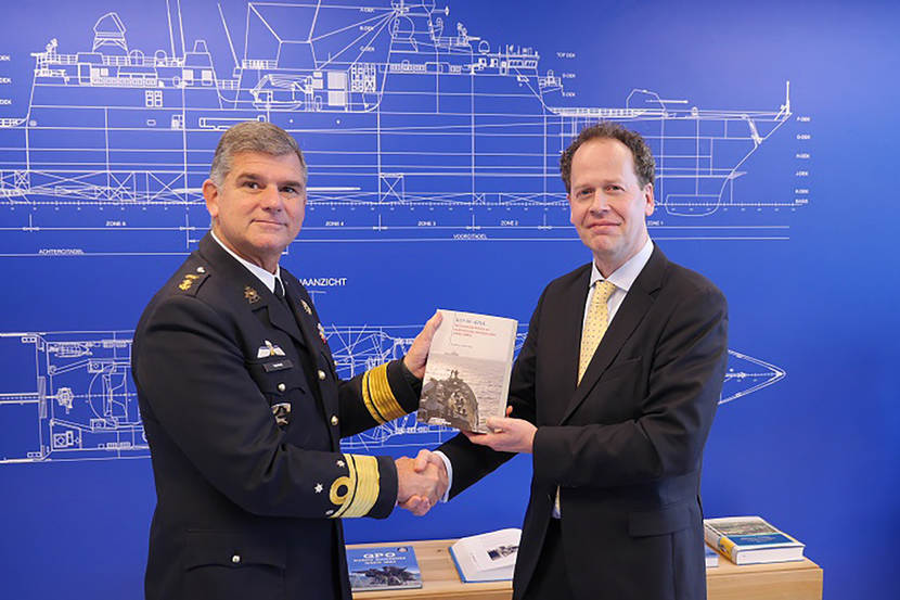 In zijn proefschrift ‘Out-of-area. De Koninklijke Marine en multinationale vlootoperaties 1945-2001’, gaat Anselm van der Peet na hoezeer het vlootoptreden buiten het NAVO-verdragsgebied in die jaren een normaal verschijnsel was in de Nederlandse buitenlandse politiek. Van der Peet bood op 14 december het eerste exemplaar van zijn proefschrift aan aan Commandant Zeestrijdkrachten LTGENMARNS Rob Verkerk.