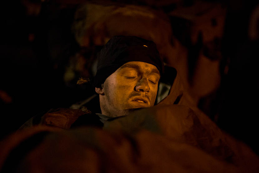 “Ik ben zo enorm blij dat het voorbij is”, verzucht Mike. Gretig doopt hij een droge snee brood in iets wat op soep lijkt en neemt voldaan een hap. “Maar ik mag mezelf nu marinier noemen. Het is de pijn meer dan waard.”