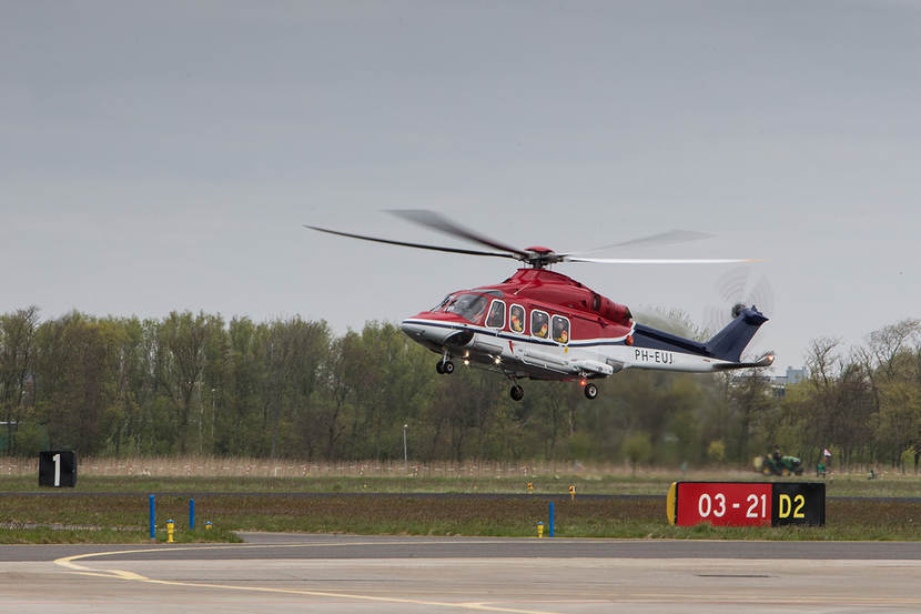 De helikopter moet een noodlanding maken op De Kooy en is geheel met rook gevuld