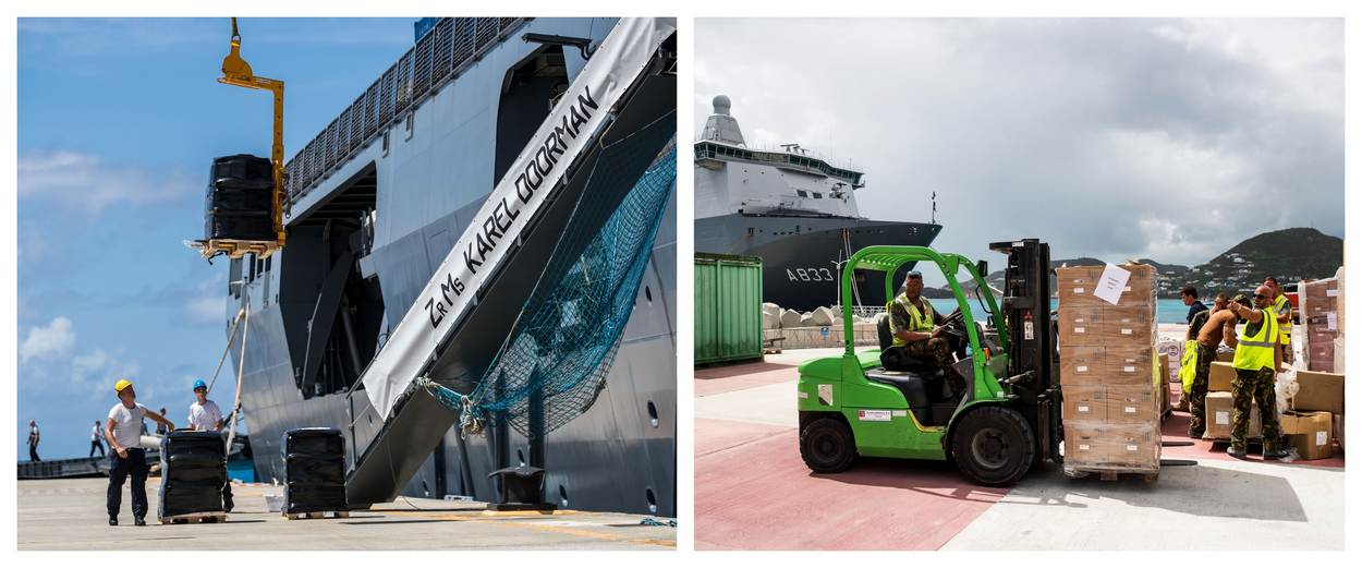 Dat alles zo lekker op rolletjes liep, was de verdienste van een marine- en landmachtsamenwerkingsverband. Nadat de Doorman in Sint-Maarten afmeerde, moest er meer dan 1 miljoen kilo aan spullen en materieel van boord. En dat verliep veel sneller verliep dan gedacht.