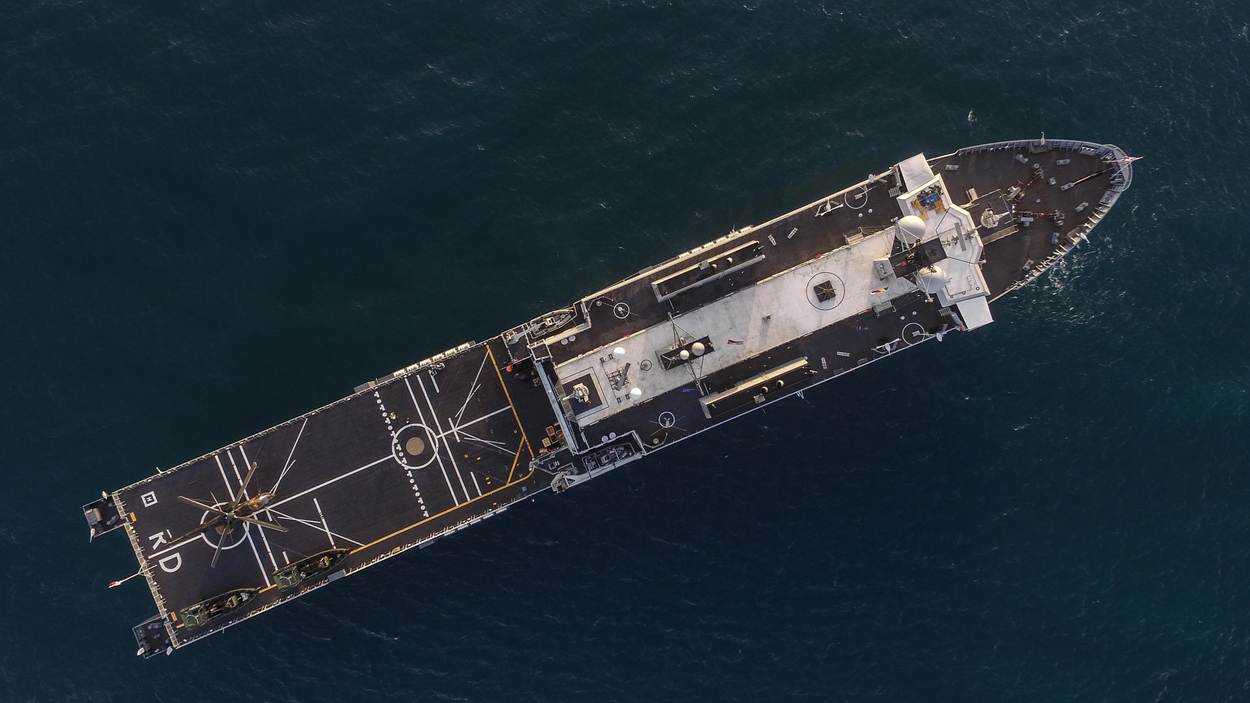 Bekijk de clip om te zien hoe MATR 1 TD Weidijk aan boord van Zr. Ms. Rotterdam oefent met boordwapens.
