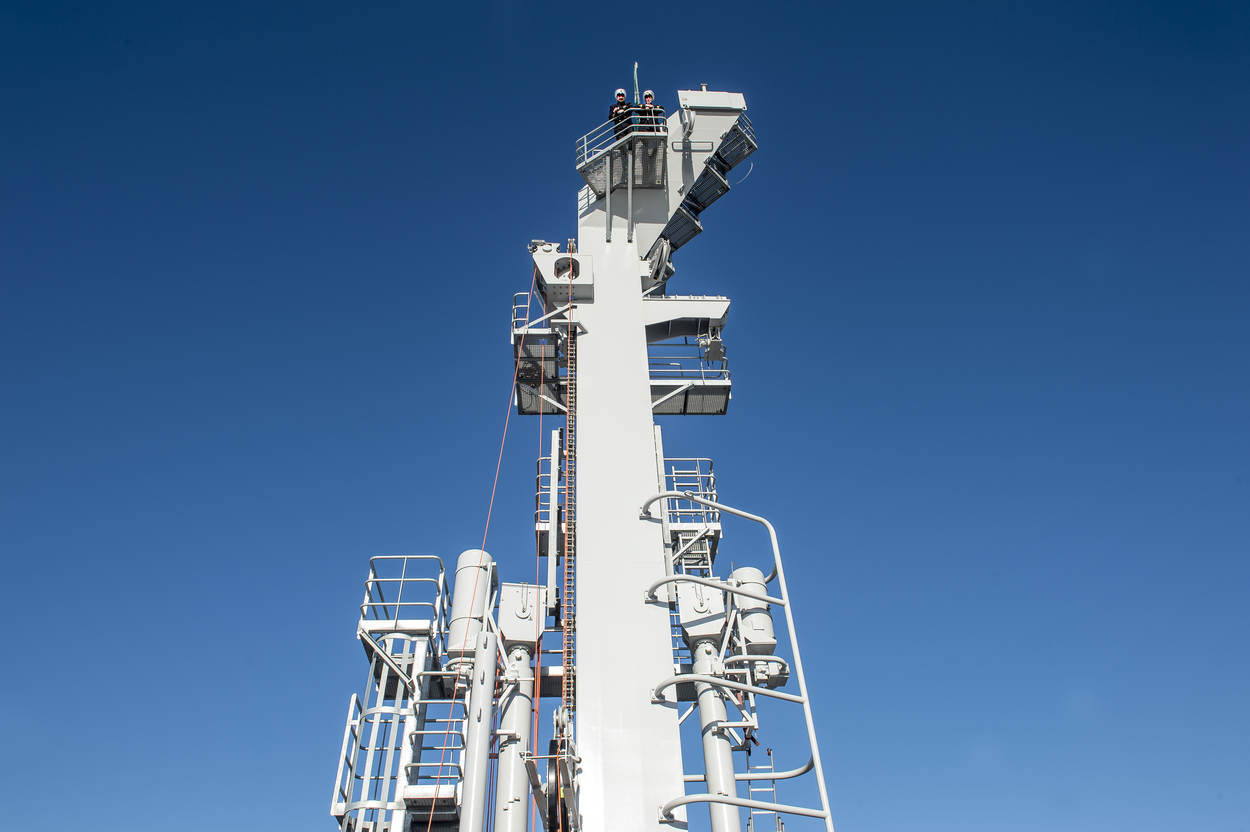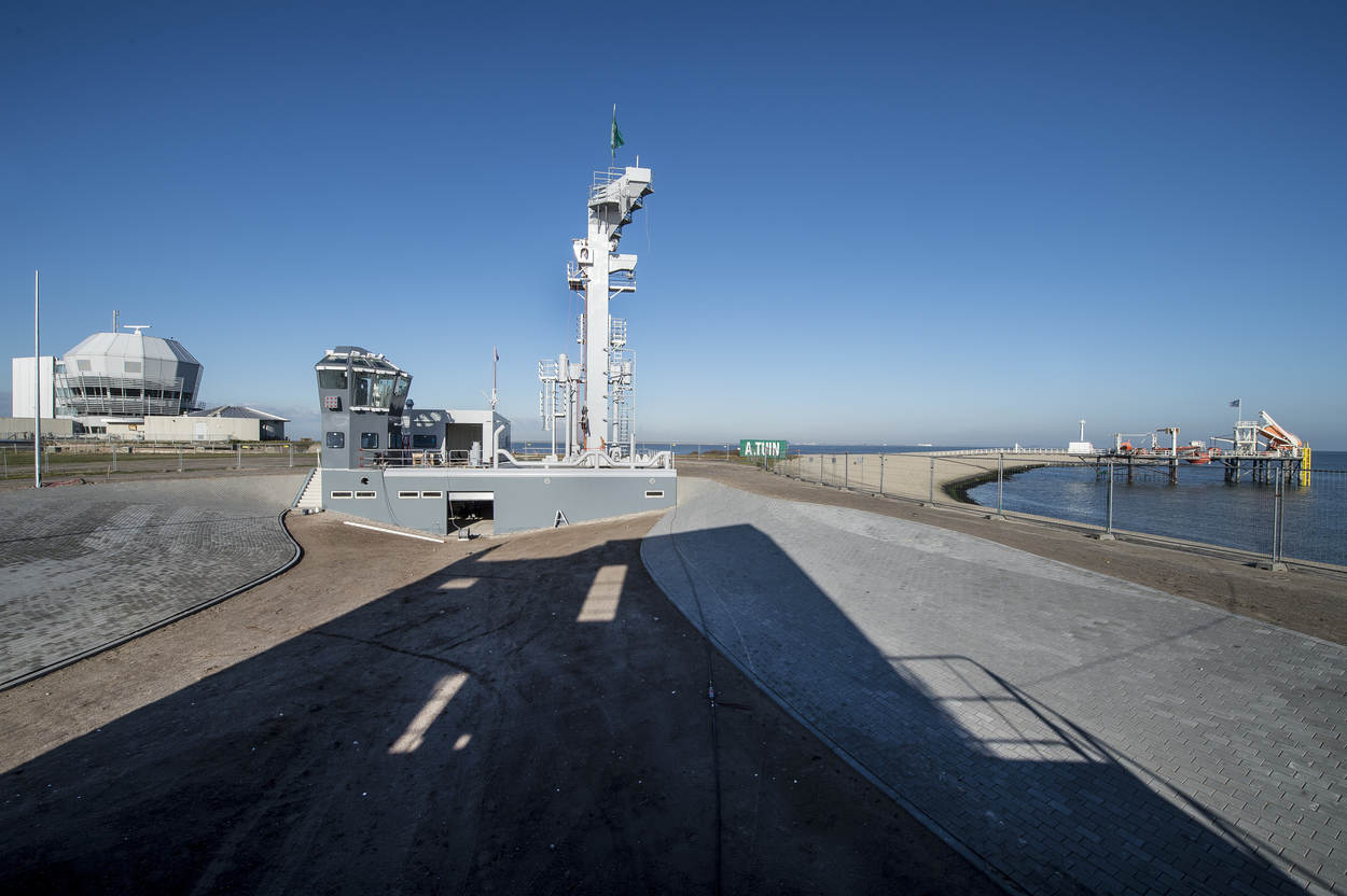Hoofdaannemer Tuin realiseerde het imposante bouwwerk, samen met een rijtje onderaannemers. Dat scheepsbouwer Damen het scheepsstaal leverde, is geen verrassing. “De opstelling stelt om te beginnen de BOZ-positie voor van Zr. Ms. Karel Doorman”, vertelt luitenant ter zee 2OC John Wennink, Hoofd Zeemanschap. “Via de portaalmast kan het laadstation van een Luchtverdedigings en Commando Fregat (LCF) aan de overkant bevoorraad worden.”