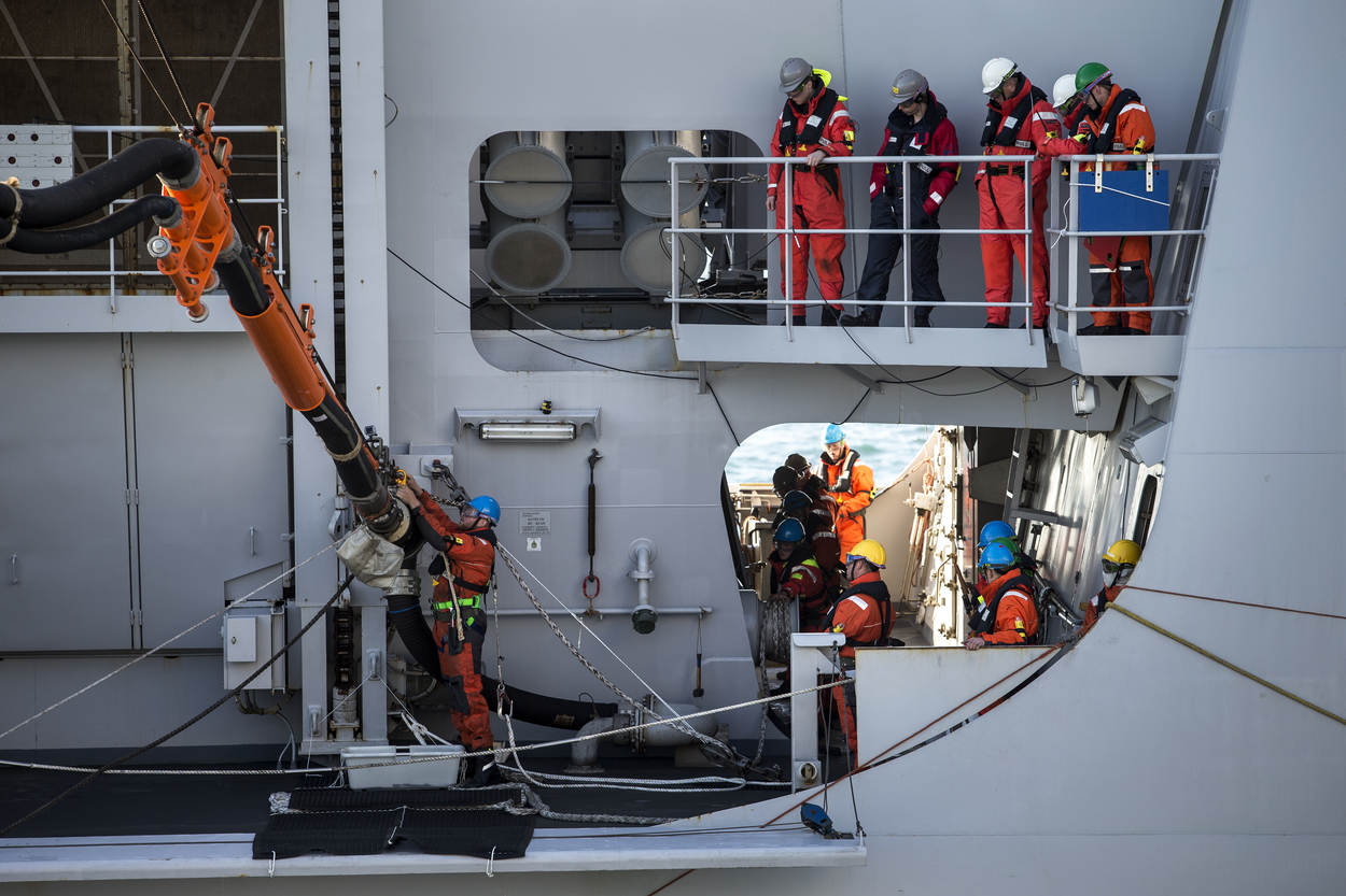 “We kunnen hier met alle tuigages van de NAVO werken”, meldt Wennink trots. Ook opperschipper Jeroen Duvekot, beoogd tuigofficier/Officier instructeur van de DVS, is in zijn nopjes met de Poolster. “Hier kun je met een team 10 tot 15 keer per dag bevoorrading op zee oefenen; veel meer dan aan boord in zoveel tijd. En je hoeft niet eens het zeegat uit.”