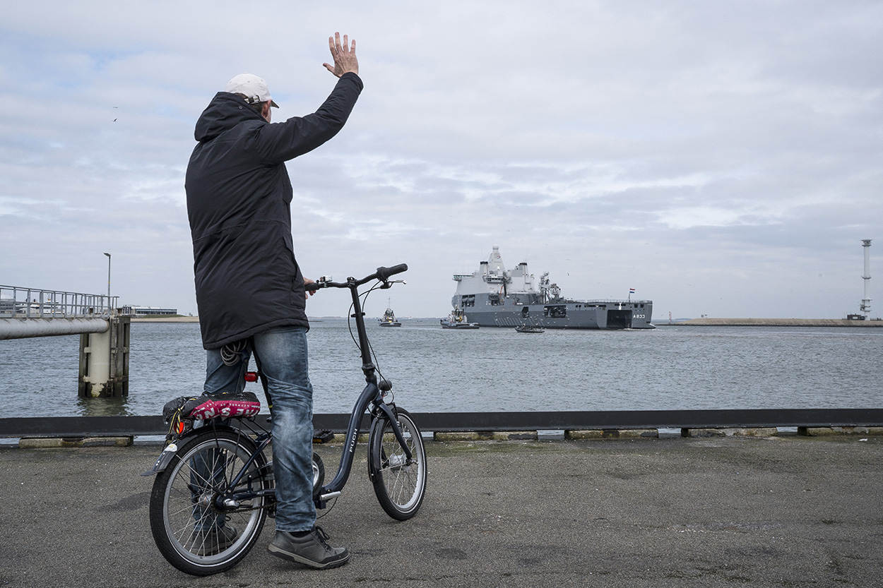 Na een lange periode van reparaties en opwerken, vertrekt het Joint Support Ship Zr. Ms. Karel Doorman op 3 april naar de Middellandse Zee. Hier neemt het nu deel aan operatie Sea Guardian, ter verdediging van de zuidflank van de NAVO. (Foto: John van Helvert).