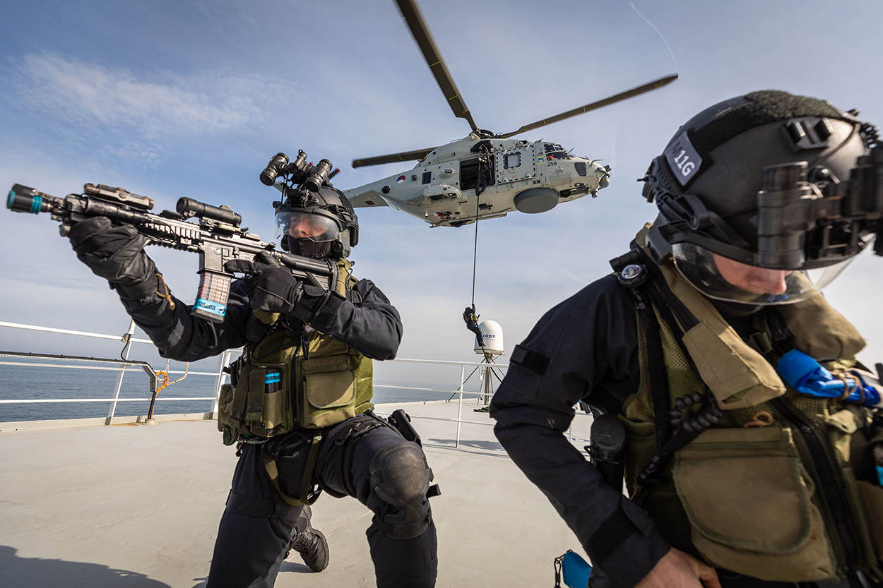 Deze week speelt oefening Port Defender zich af in de havens van Amsterdam en IJmuiden, op het Noordzeekanaal en op volle zee. Kapers mogen tegenstand verwachten van de Dienst Speciale Interventies, waar ook Netherlands Maritime Special Operations Forces deel van uitmaken. (Foto: Martijn Beekman)