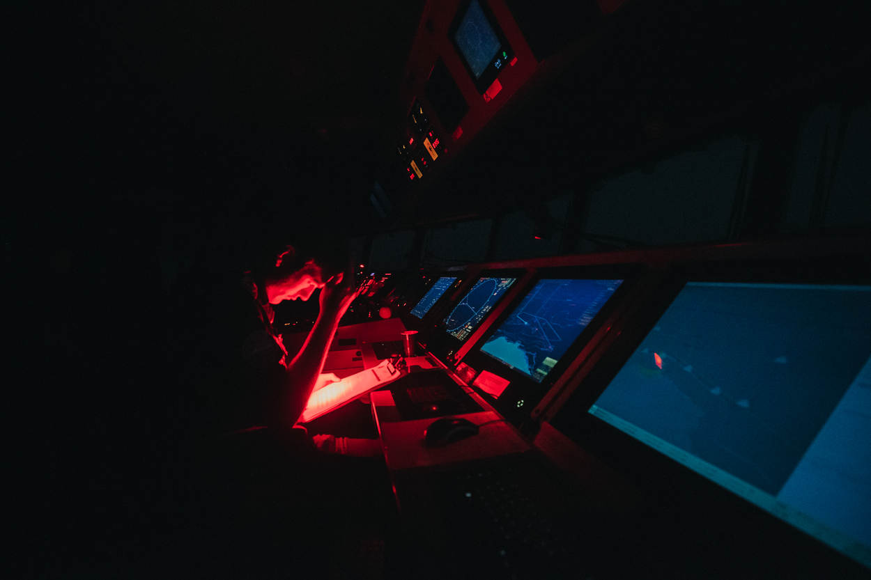 Luitenant ter zee 1 Gerben Koren, hoofd van de Operationele Dienst van de Doorman: “We zetten alle mogelijke sensoren in om niet alleen de scheepvaart, maar ook het luchtverkeer in kaart te brengen. Het begon bij de standaard sensoren van het schip, zoals de SMILE-luchtwaarschuwingsradar en de navigatieradars. Daarnaast beschikten we ook over de Electronic Warfare (EW)-capaciteit van het Joint Intelligence, Surveillance, Target Acquisition & Reconnaisance Commando. Met de Cougar boordhelikopter voerden we vluchten uit om een groter gebied te kunnen bestrijken. De kleinere vaartuigen, waaronder de FRISC, zetten we in om gericht scheepvaart te identificeren en/of te benaderen. Uiteindelijk kwam alle informatie in de Environmental Cell samen en werd er zo gezorgd voor een totaalbeeld.”