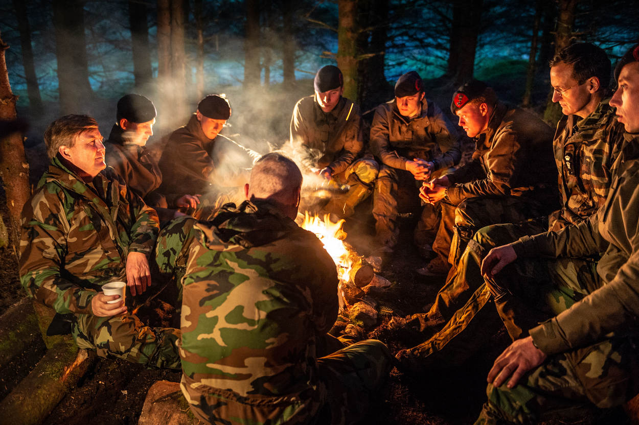 Koning Willem-Alexander bezocht de mariniers in Schotland en bracht de nacht door in het veld met de eenheid. (Foto: Jarno Kraayvanger)