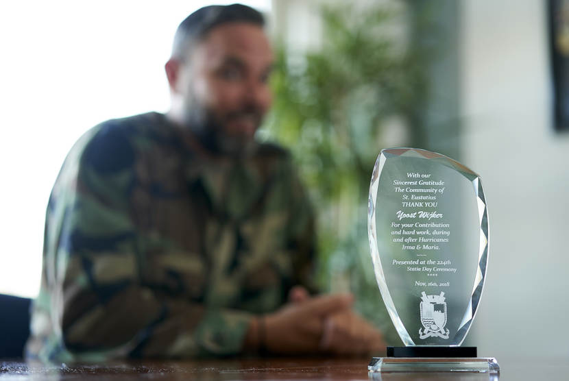 Op de nationale feestdag op 16 november, Statia Day, kreeg Wijker een glazen plaquette, als blijk van waardering voor zijn werk, tijdens met name Irma. “Ik was verrast. Ik sta niet graag op de voorgrond, het gaat tenslotte niet om mij. Maar dit kwam echt vanuit de mensen zelf. Op het glaswerk staat weliswaar mijn naam, maar we hebben dit met een heel team gedaan.”