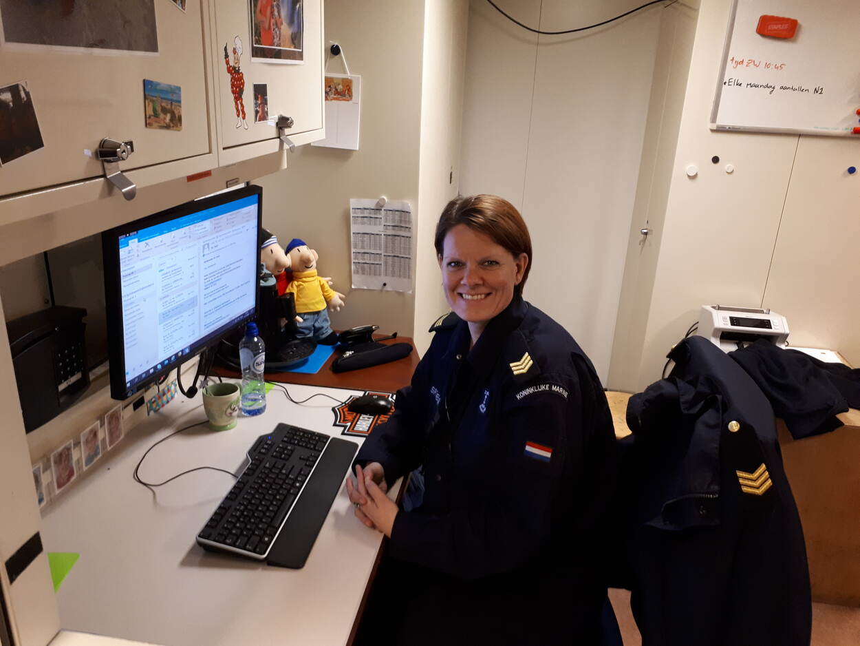 Daphne is geplaatst op het Luchtverdedigings- en Commandofregat Zr. Ms. De Ruyter. In december 2018 kwam ze terug, na een trip van ruim 5 maanden naar de Middellandse Zee. Ze is de dame van het geld aan boord, als kasbeheerder en chef Bureau Administratie. “Zonder de kasbaas kunnen ze niet zoveel in het buitenland”, lacht ze. Een lach die vaak terugkeert in het gesprek. “Ik vind het varen helemaal geweldig. Je ziet zoveel van de wereld.”