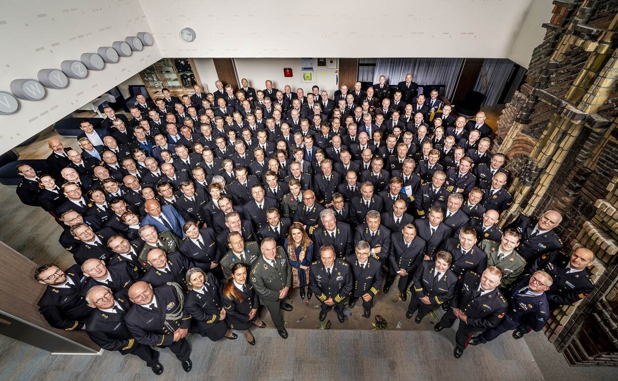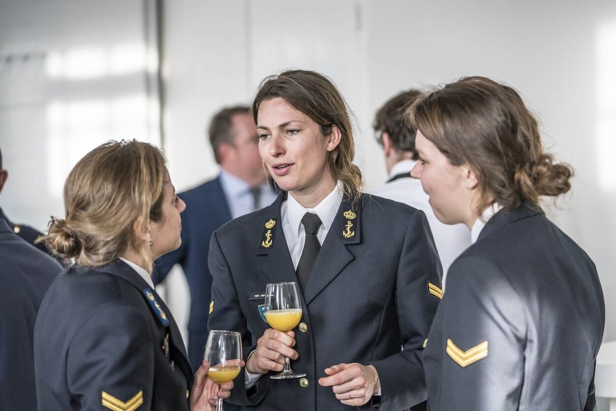 De defensiefotograaf ruimt ten slotte tevreden zijn apparatuur op. Hij heeft alle aanwezige reservisten in 1 shot gekregen. Tijd om naast het MEA, in het aangrenzende Scheepvaartmuseum, de feestelijkheden in een meer informele setting voort te zetten.