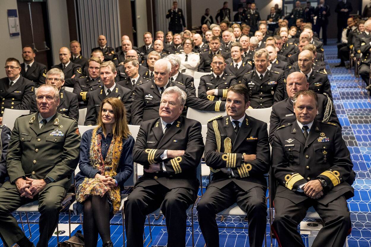 Plaatsvervangend Commandant Zeestrijdkrachten generaal-majoor der mariniers Frank van Sprang benadrukt in zijn toespraak de relevantie van de reservist voor de marine, nu en in de toekomst. Namens Commandant Zeestrijdkrachten vice-admiraal Rob Kramer reikt Van Sprang de legpenning Prins Hendrik uit aan de Koninklijke Marine Reserve. “Wegens de waardevolle bijdrage die de reservisten al 125 jaar leveren binnen de gelederen van de Koninklijke Marine. Door hun militaire ervaring en civiele expertise, in combinatie met hun flexibele inzetbaarheid, zijn ze van een onmisbare meerwaarde voor onze taakuitvoering.” De commandant KMR, kapitein-luitenant ter zee (SD) Riekus Hatzmann, neemt de penning trots in ontvangst.