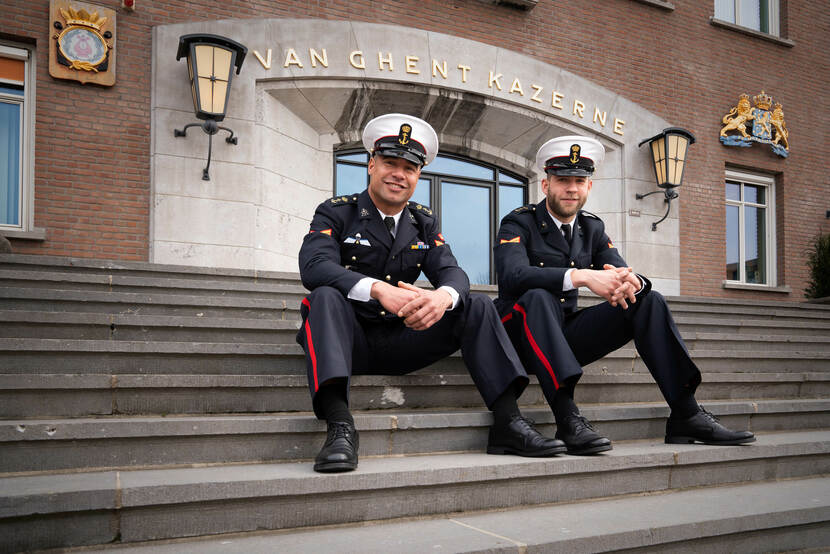33 mariniers zijn onlangs op de Rotterdamse Van Ghentkazerne bevorderd tot korporaal van de mariniers, nadat ze de Voortgezette Vakopleiding (VVO) hadden afgerond. Onder hen voor het eerst ook 2 reservisten. Marvin Bouman en Allan Uiterwijk verlieten ooit na afloop van hun fase 1-contract het Korps Mariniers. Bouman ging de horeca in, Uiterwijk belandde in de Rotterdamse haven en de bouw. “Ik had het op zich prima naar mijn zin”, aldus Bouman. “Totdat ik op social media door oud-collega’s werd getagd over het Rejoin het marines-traject.”