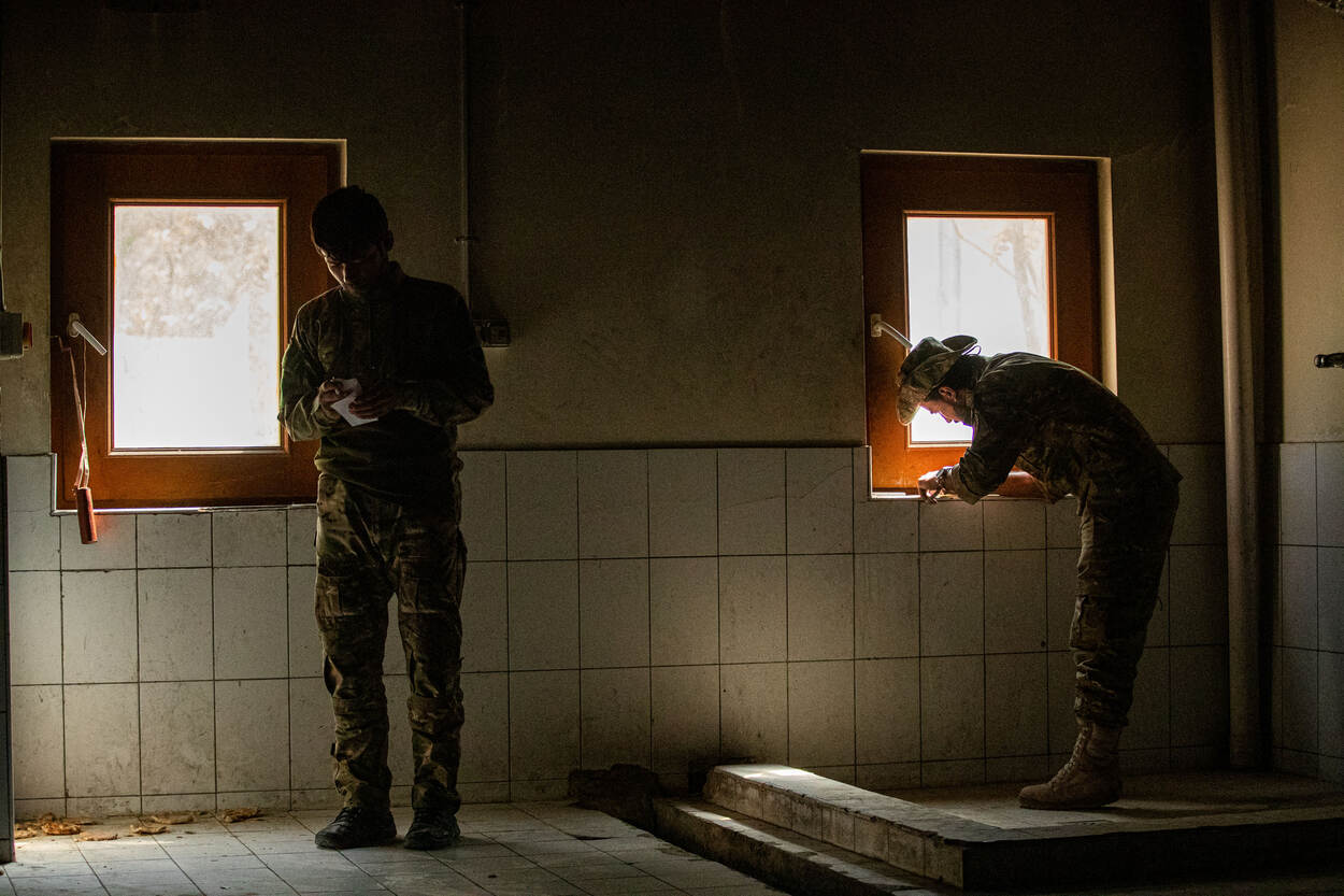 “Bij hun is de natuurregel eigenlijk: zolang er geen vertrouwen is, nemen ze niks van je aan. Het vertrouwen kwam bij ons relatief snel, omdat we samen operaties deden. Dan wordt alles in een snelkookpan gezet, en zit je samen in de shit. Na zo’n operatie komen ze naar je toe, en danken ze God dat we hier zijn. Als ze echt iets tegen me willen zeggen, pakken ze m’n hand vast. Wij vinden dat vreemd, maar als hun commandant dat doet wil hij echt iets bespreken. In die zin kunnen we best wat van ze leren, ze zijn ongelofelijk gastvrij, en bijna hypergevoelig soms, dat vind ik mooi om te zien.”