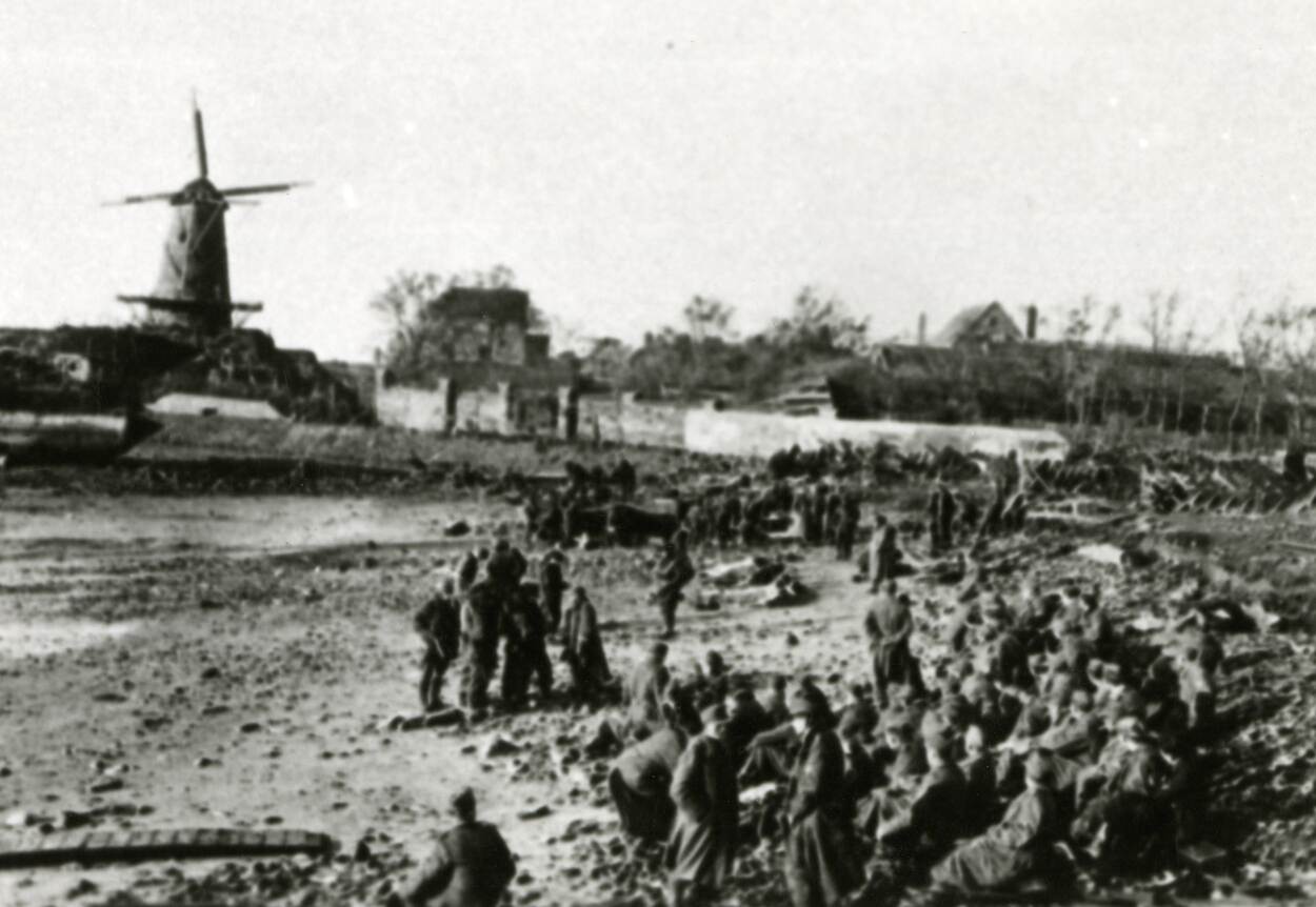 Duitse krijgsgevangenen, door geallieerde commando’s bijeengebracht in de Dokhaven.