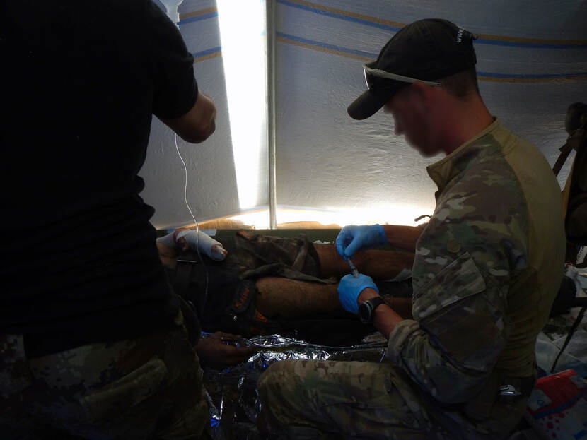 Omdat de Nederlanders formeel alleen zijn uitgezonden om trainingen te geven en onder geen beding zelf deel mogen nemen aan gevechtsacties, is de speelruimte echter beperkt. Toch krijgen ze de benodigde toestemming van hogerhand en staat binnen enkele uren een groepje special forces medics paraat op de aangewezen locatie. Binnen een dag wordt met tenten en veldbedjes een CCP ingericht. De faciliteiten zijn wel Spartaans. Eén van de tenten doet dienst als geïmproviseerd mortuarium en als eigen onderkomen gunnen de medics zichzelf niet meer dan een zeiltje naast de auto.