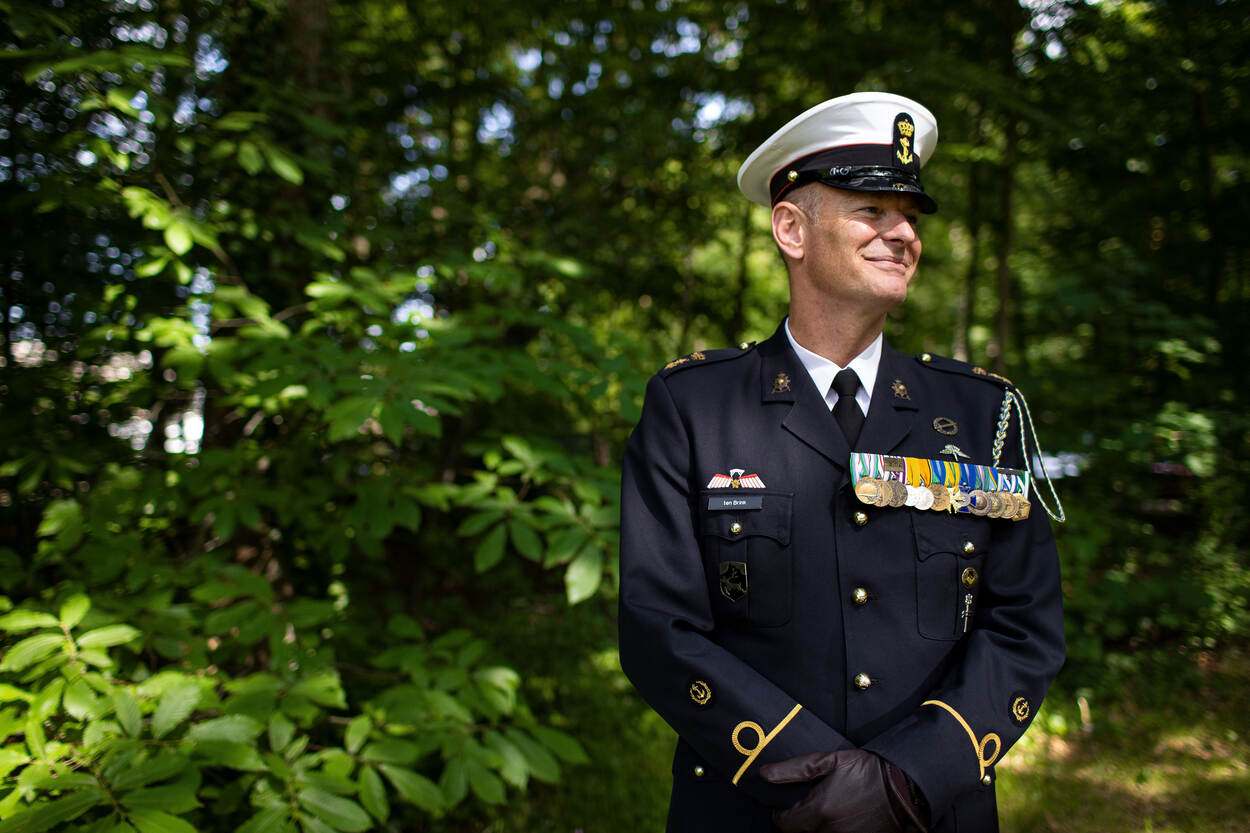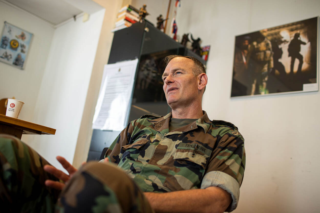 Over 5 maanden breit Ten Brink een eind aan zijn laatste functie als stafadjudant en daarmee zijn loopbaan binnen het Korps Mariniers. Dat hij met Functioneel Leeftijdsontslag (FLO) gaat, is voor de potige adjudant nog altijd lastig te beseffen. “Als jonge gast klinkt 54 bejaard, maar wanneer je die leeftijd nadert, voelt het toch anders.”