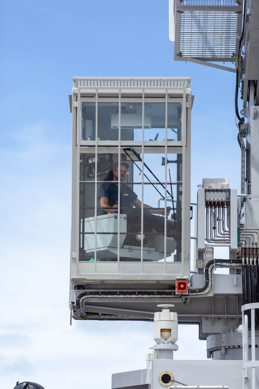 "Het manoeuvreren is hetzelfde gebleven. Er is niets gebeurd met de roeren en de voortstuwing, behalve dan dat ze uit elkaar zijn gehaald en groot onderhoud hebben gehad. De boegschroef idem. Maar, we hebben wél een nieuwe kraan en daar draait het om bij een transport- en ondersteuningsschip als de Pelikaan. We kunnen veel meer doen, zoals ook varend vaartuigen lanceren op zee. Wij hebben weliswaar geen eigen FRISC's, maar de mariniers wel en daar oefenen we vaak mee. Die boten kunnen we nu ook aan en van boord hijsen op zee."