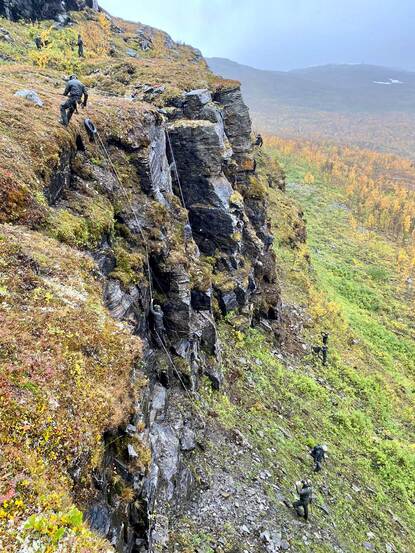 Natuurlijk is het nog steeds loodzwaar en heb je pijn aan je poten en daalt de regen ongenadig neer. Wat dat betreft niet veel verandering door de verhuizing van de ‘Joint Mountain Training’ van Schotland naar Noorwegen. Wel anders: de aanpak van het leerproces en de samenstelling van de groepen. Dat zijn nu de organieke eenheden, met een mix van getrainde mariniers en nieuwkomers, geleid door eigen kader. De instructeurs zijn inmiddels minder de afknijpers van weleer; zij hebben veel meer een coachende rol. De ommezwaai van mangelen naar motiveren.